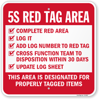 5S Tag Signs are great for marking the red tag holding area in your facility. Bold, red and white signs draw attention to the area where non-conforming and rejected products are stored. Whether you are looking for circular floor signs or durable aluminum signs for wall and post mounting – our gallery will help you meet the purpose.
