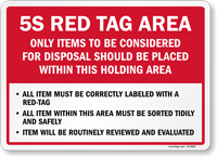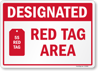 These signs mark the "Red Tag Area" or "Holding Area" in a workplace where items go during the "Sort" phase.