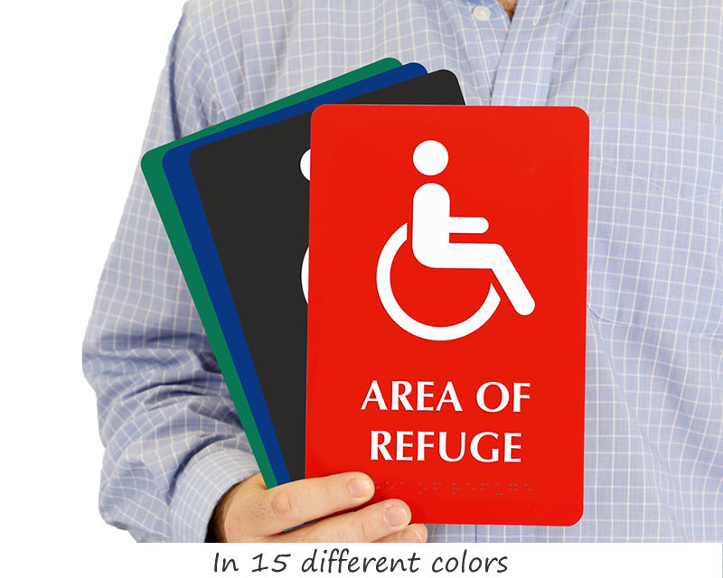 Our Area of Refuge Signs help you comply with the International Building Code 1009.9. Since the requirements are different for each building type and every area, consult with your local and state codes.