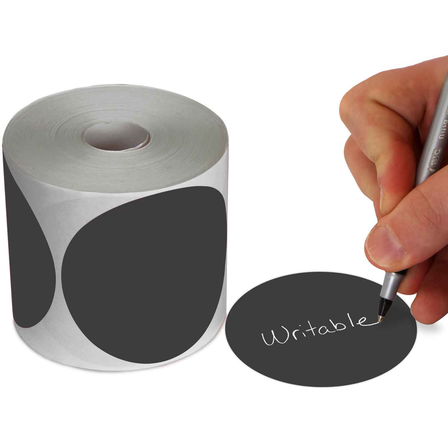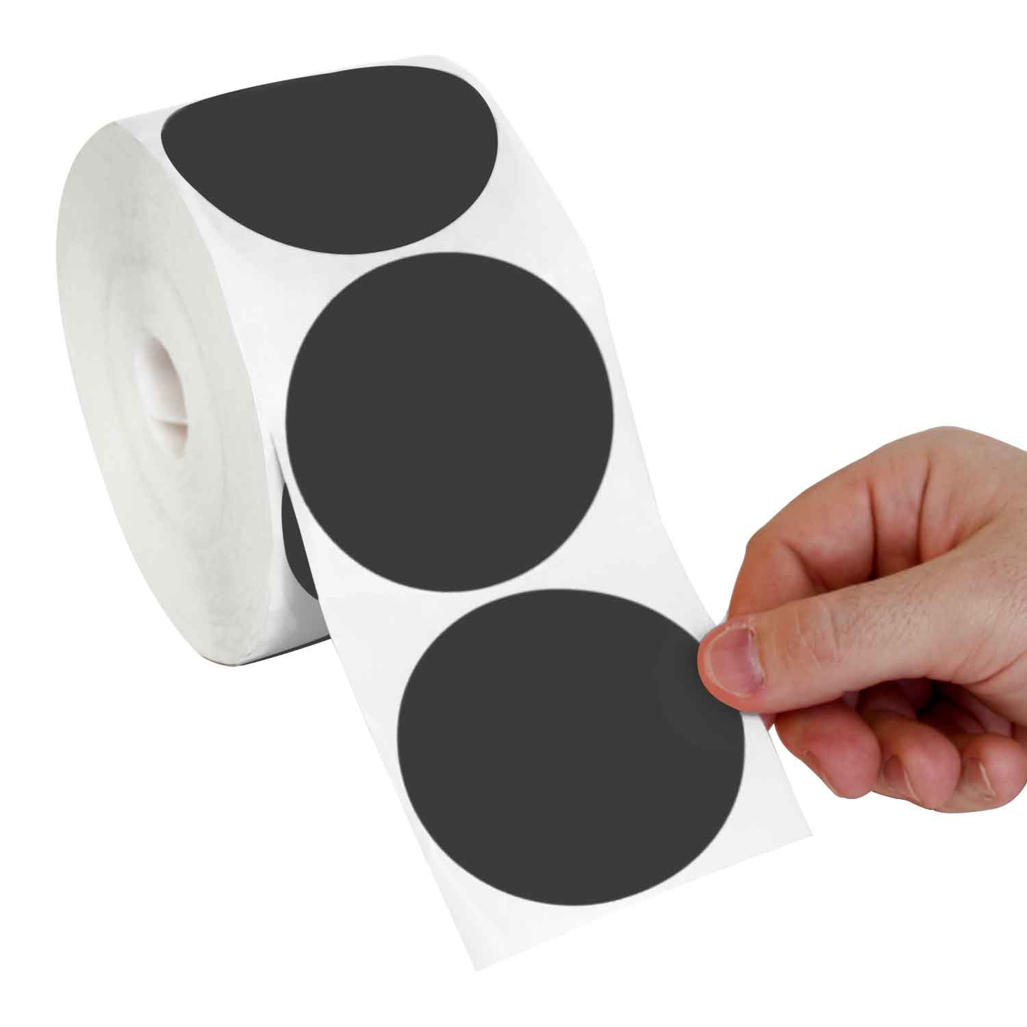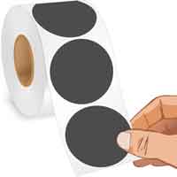 A roll of 4 in. Black circular dot stickers is easy to manage. Write your message on-the-spot using a ball point pen or pencil.