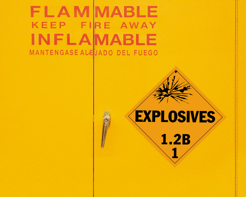 Keep these placards handy for explosives that have a projection hazard but not a mass explosion hazard like detonating fuses, ammunition, or fireworks.