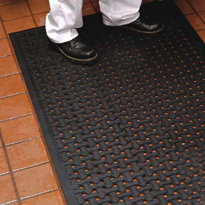 A lightweight, anti-fatigue, fully-launderable mat for both wet and dry environments. Holds up well.
