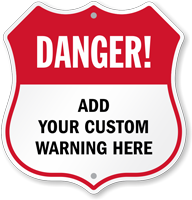 A custom danger sign uses the standard red, black, and white OSHA/ANSI danger header. It allows you to add specific text to warn of immediate, life-threatening hazards. This is the top tier of our osha danger signs.