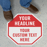 Custom floor signs are made from heavy-duty vinyl with a slip-resistant over-laminate and a high-bond adhesive that sticks to smooth concrete or tile.