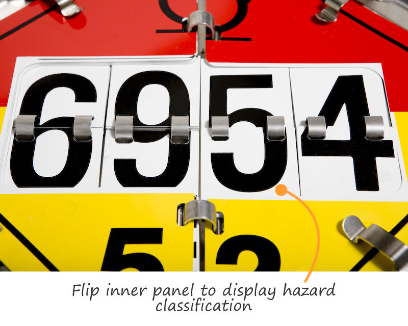 Digi-Lock placards are a convenient way to display hazard numbers on trucks using a flip-style system. Instead of individual number kits, you can digitally change the numbers by flipping the tabs. It is a fast, professional way to stay DOT-compliant when hauling various types of hazardous cargo throughout the week. Browse our complete selection of Digi-Lock placards to find the right flip-number system for your fleet.