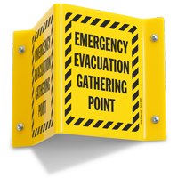 The size of the sign depends on the viewing distance. Larger, more visible signs are needed for large facilities, parking lots, or campuses where people will be looking for the sign from hundreds of feet away. A smaller sign may suffice for an assembly area just outside a small building. ANSI and OSHA standards provide guidelines on character height and sign size for legibility at a distance. For a large, highly visible option, consider our Emergency Evacuation Gathering Point Sign. You can also learn more by watching our video on how big your sign should be.