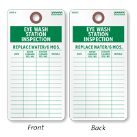 The ANSI standard Z358.1-2009 requires that plumbed flushing equipment (drench showers, eyewash stations etc,) whether portable or self contained, should be visually checked to determine if flushing fluid needs to be changed or supplemented. Our Eyewash Inspection Tags allow facility owners to track repair and maintainance of eyewash stations crucial for employees working with hazardous materials.