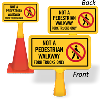 Lower the forklift speed limit in your facility. Forklift signs help employers comply with OSHA standards. Post a cautionary message to make that sure that only certified drivers operate your forklifts, and remind pedestrians to keep a safe distance from machinery.