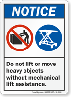 For loading docks and receiving areas, a 10x14 inch or 14x20 inch lifting instruction sign provides clear visibility without taking up excessive wall space. Larger signs work well in high-bay areas or open warehouse floors where the sign needs to be seen from a greater distance. We offer lifting signs in a range of sizes to match the specific space and viewing distance at each handling location.