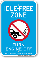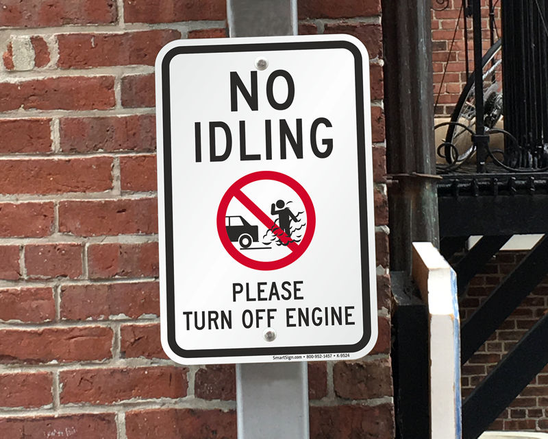 Fines for violating no idling restrictions typically range from $50–$500 depending on jurisdiction and vehicle type. Commercial vehicles often face higher fines. Signs such as the no idle zone turn your engine off sign are used to emphasize enforcement near schools and public areas. For legal standards, see MUTCD Section 2B.