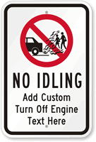 Whether people are idling in your lot or on the street, promote safe, clean behavior with a no idling sign and idle free zone sign. If you want a more personal message, easily customize text and graphics.