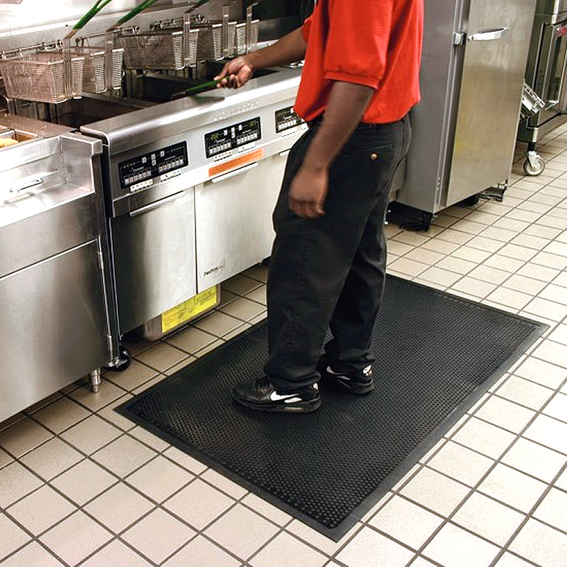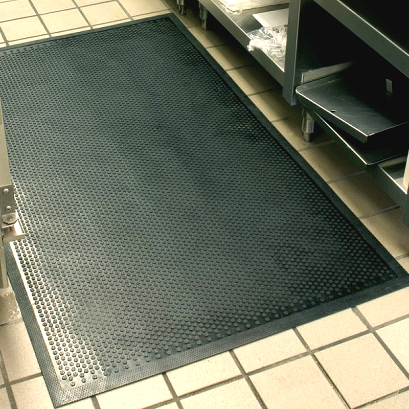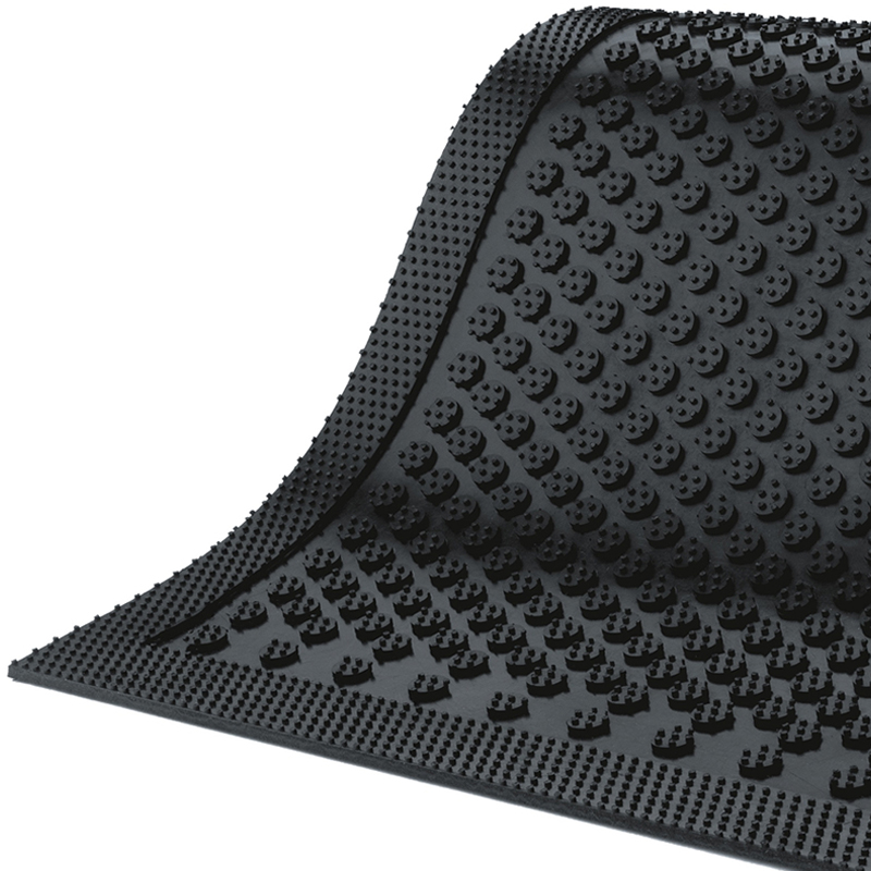 Safety Scrapeâ„¢ features Tri-Grip cleated backing to minimize mat movement, with slip-resistant round treads.
