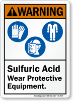 Handling and storing sulfuric acid requires strict safety protocols, personal protective equipment, and appropriate containment measures to minimize the risks associated with its use. Proper training and awareness are crucial for individuals working with or around sulfuric acid to prevent accidents and protect both human health and the environment. Sulfuric Acid Labels are designed to keep your workplace safe and compliant.