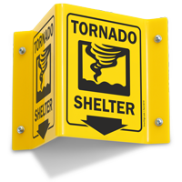 Tornado Shelter signs point the way to the emergency shelter. In dangerous situations, time is of the essence and well placed signs are crucial. For areas with frequent tornados, a tornado shelter is important. But without signs directing people, the shelter won't fulfill its purpose. Post signs to ensure that everyone knows the way to the tornado shelter in case of emergency.