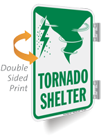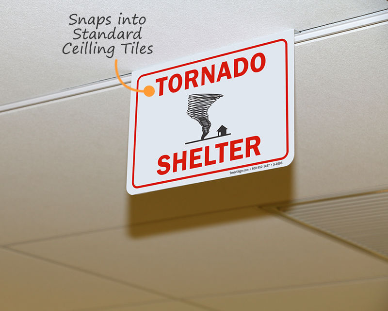 Tornado Shelter signs point the way to the emergency shelter. In dangerous situations, time is of the essence and well placed signs are crucial. For areas with frequent tornados, a tornado shelter is important. But without signs directing people, the shelter won't fulfill its purpose. Post signs to ensure that everyone knows the way to the tornado shelter in case of emergency.