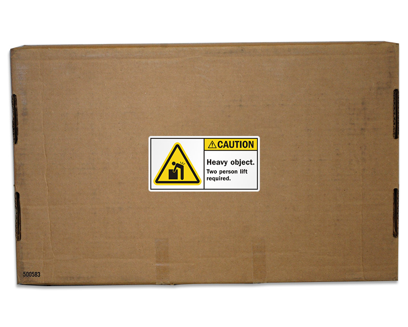 Apply two person lift labels on packaging, equipment, crates or materials that exceed recommended single person lifting limits. Labels like the multi person lift required label help communicate the need for team lifting before moving a heavy or awkward object. OSHA suggests clear identification of manual lifting hazards.