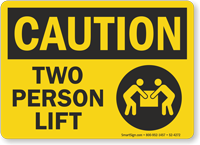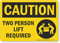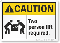 Two person lift labels warn workers that a load is too heavy or bulky for one person to lift safely. These labels help prevent back injuries and support proper material handling practices. You can explore all options on our two person lift labels page or choose a product such as the multi person lift required ANSI label. OSHA’s ergonomic guidelines support team lifting for heavy loads.