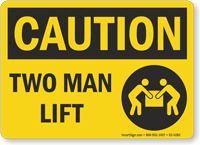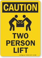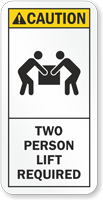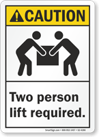 Two person lift labels warn workers that a load is too heavy or bulky for one person to lift safely. These labels help prevent back injuries and support proper material handling practices. You can explore all options on our two person lift labels page or choose a product such as the multi person lift required ANSI label. OSHA’s ergonomic guidelines support team lifting for heavy loads.