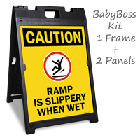 • • Our sturdy and extra tall BabyBoss floor signs are designed for high traffic areas and are also great outside.