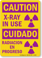 This depends on the intensity of the radiation. For most standard medical or dental X-ray units, a general "CAUTION - X-RAY IN USE" sign is sufficient. However, OSHA regulations require more specific information for "High Radiation Areas."